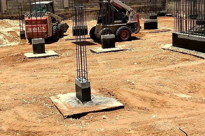 بعد ذلك يتم صب القواعد وذلك باختيارك صبها عن طريق شركات أي (بالمضخة) أو عن طريق العمالة، العمالة أرخص ولكنها ليست ذات جودة عالية